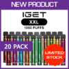 The IGET XXL is a device for leisure vaping, 1800+ puff made of light SS material & providing comfortable hand feeling. With amazing flavour and a large capacity, the IGET XXL will be there for whenever you need it.