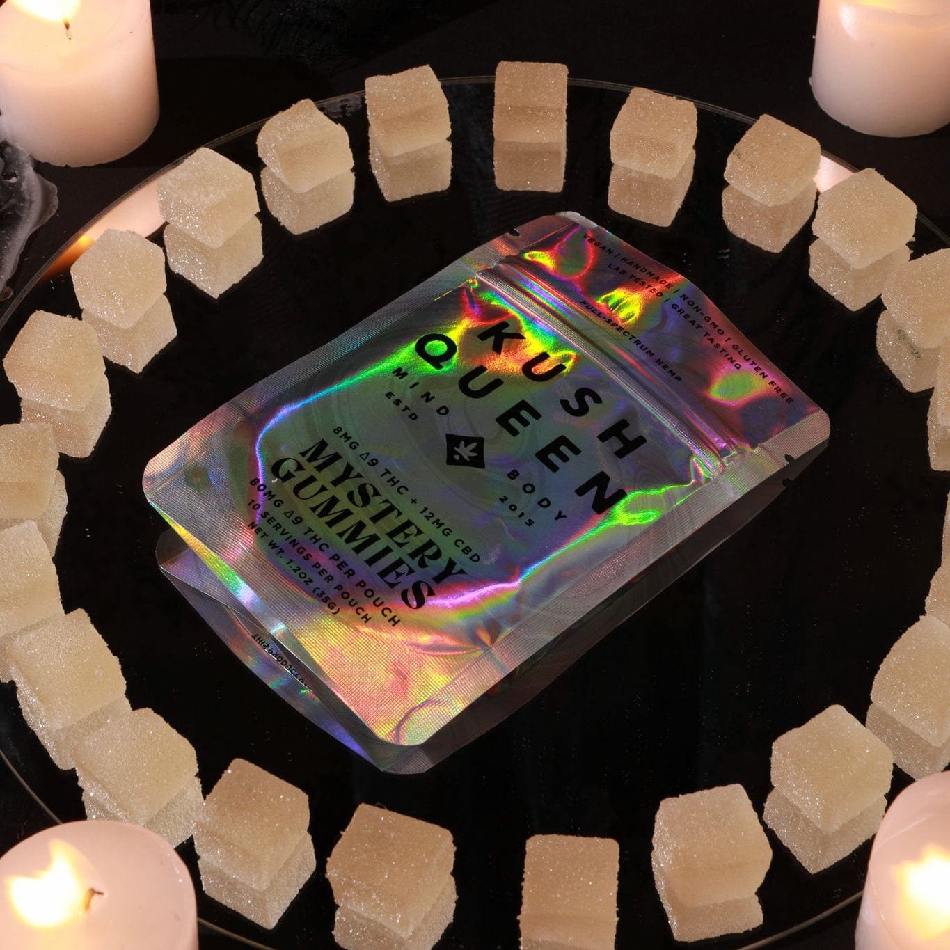 The fast acting, intoxicating effects of Kush Queen’s Delta 9 THC Mystery Pack can shift your mood, release tension and bring an extra sense of calm day or night.