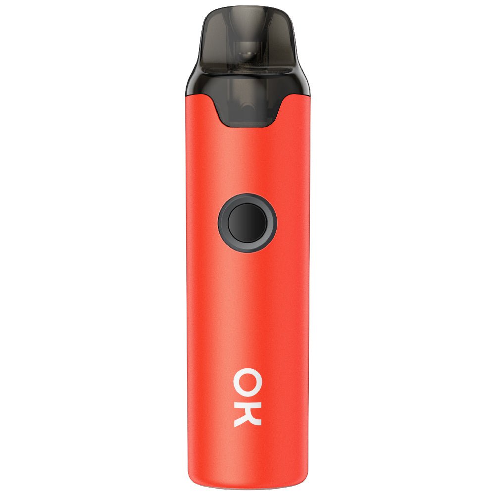Innokin OKINO C100 pod system kit, features a rechargeable 800mAh battery, direct voltage-based output, and utilizes the RDL OK Coil Series with the 4mL pod. Constructed from lightweight materials, the chassis of the OKINO C100 is portable and strong.
