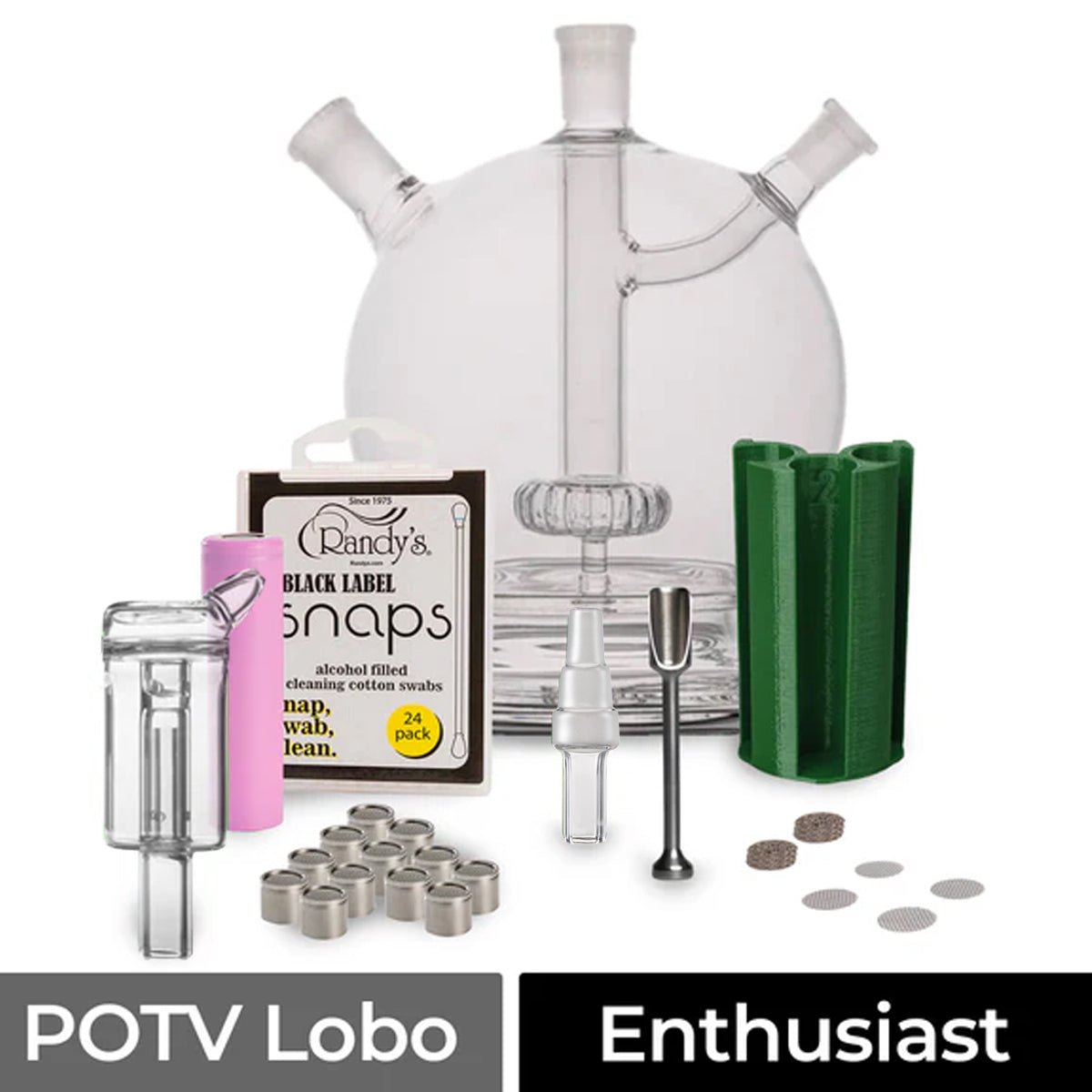 The POTV Lobo Enthusiast Accessories Bundle is for the experienced POTV Lobo user who is ready to unlock its full potential and vape like a boss. You’re familiar with the type of sessions it can produce, and you’re eager to push it to its limits.