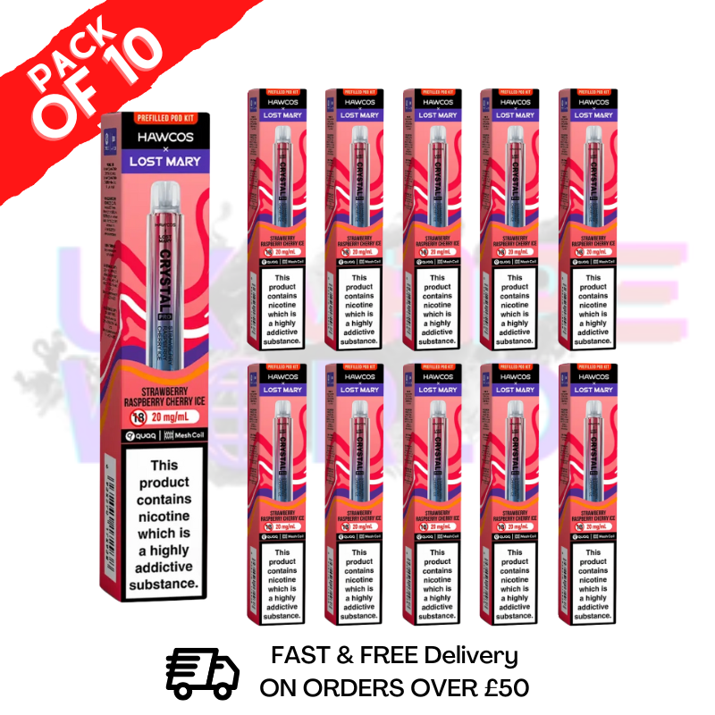 Shop Strawberry Raspberry Cherry Ice Lost Mary Crystal Pro 600 KITS (Box of 10) is a triple berry blend of sweet strawberries, tangy raspberries, and rich cherries, chilled with icy freshness for a bold, fruity vape with a cool, refreshing exhale Lost Mary Crystal Pro 600!
