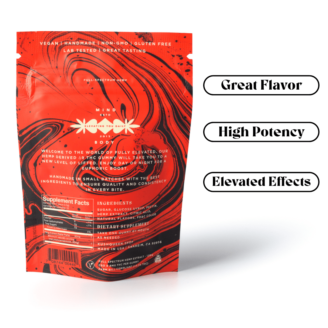The fast acting, intoxicating effects of Kush Queen Delta 9 can shift your mood, release tension and bring an extra sense of calm day or night.